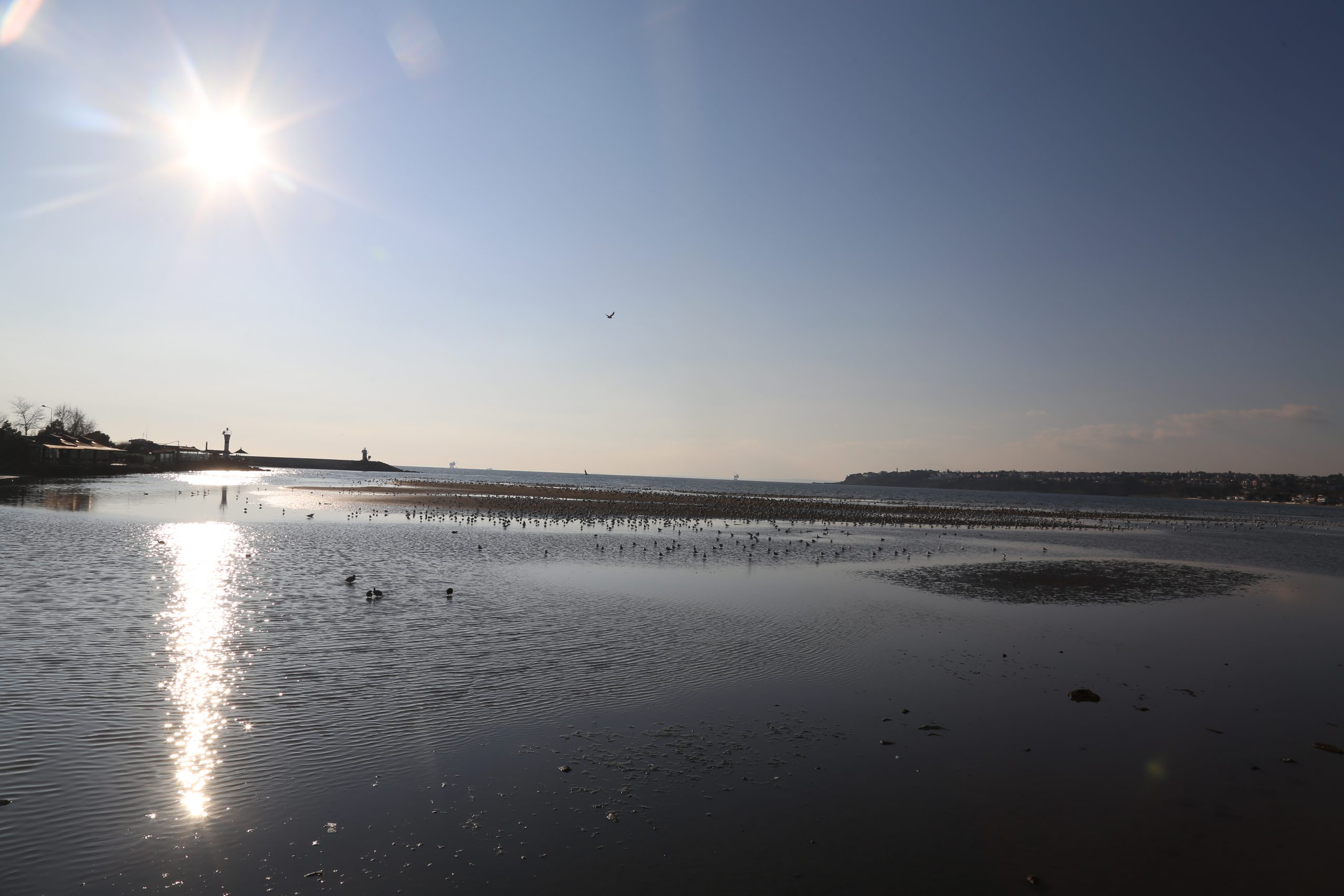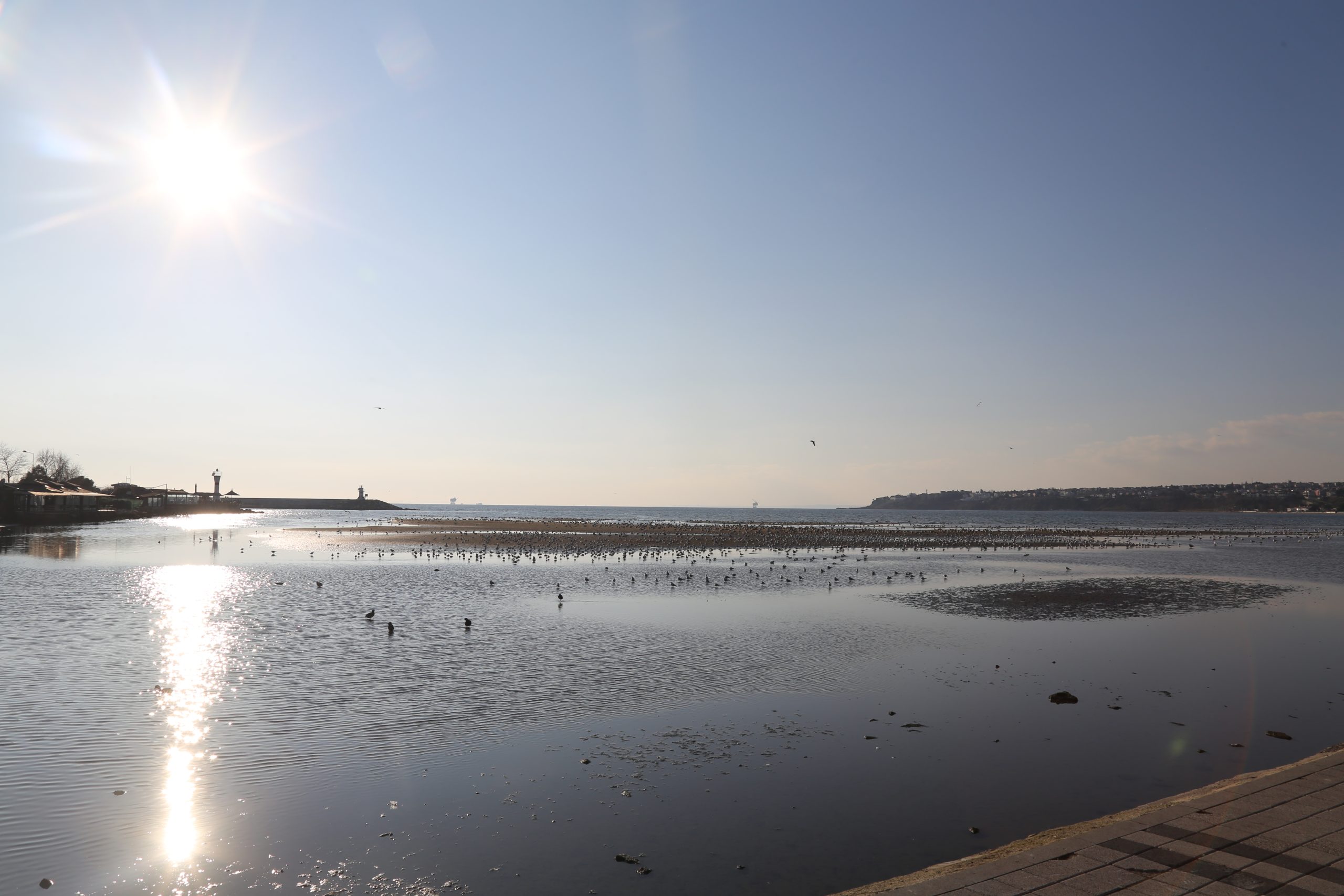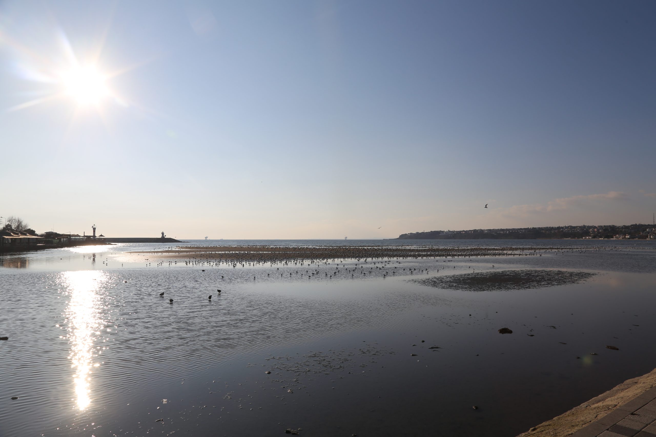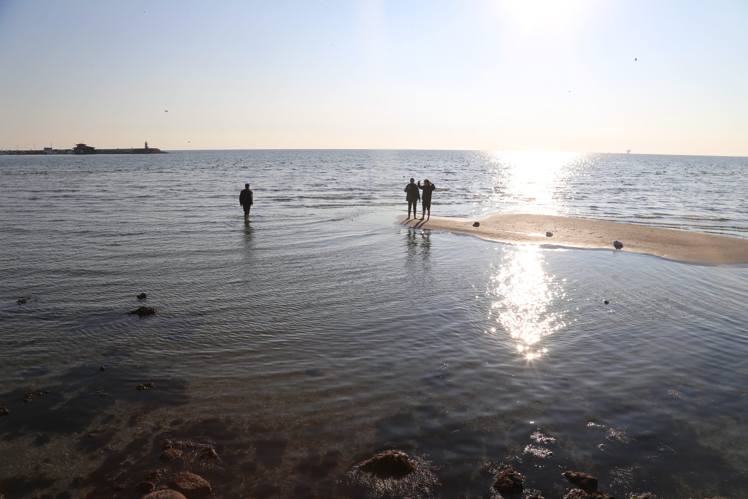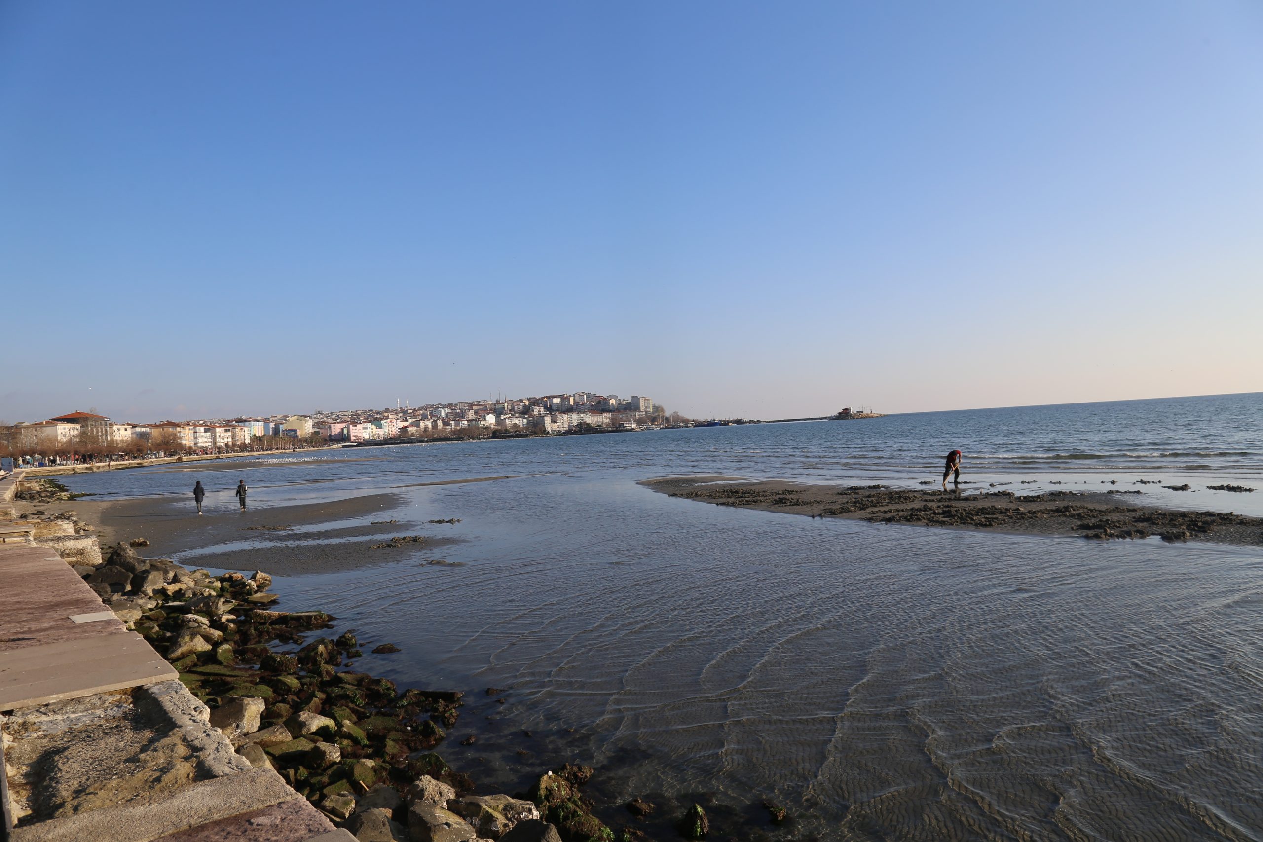 Silivri’de deniz çekildi. Vatandaşlar ortaya çıkan adacıklarda selfie çekiyor!