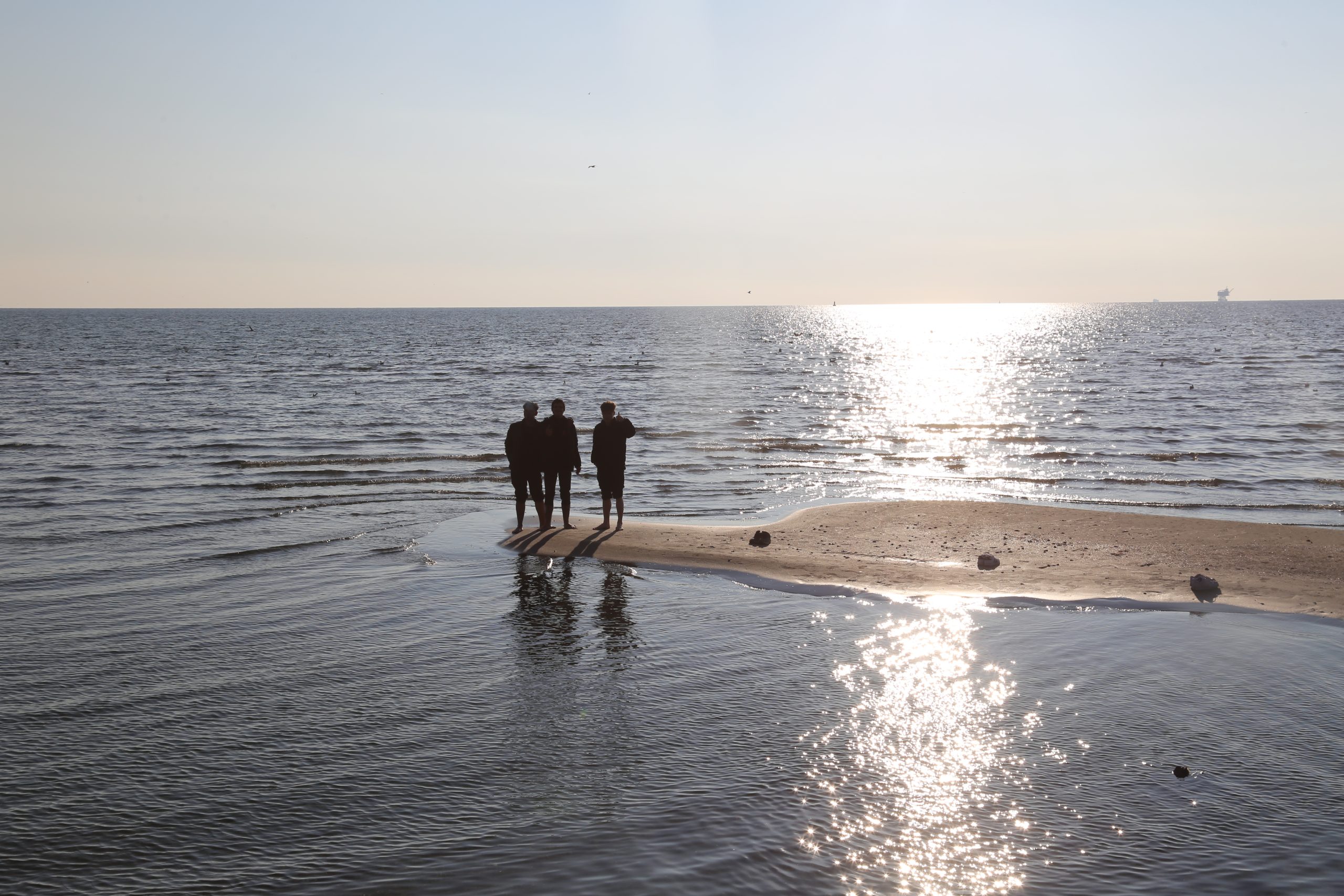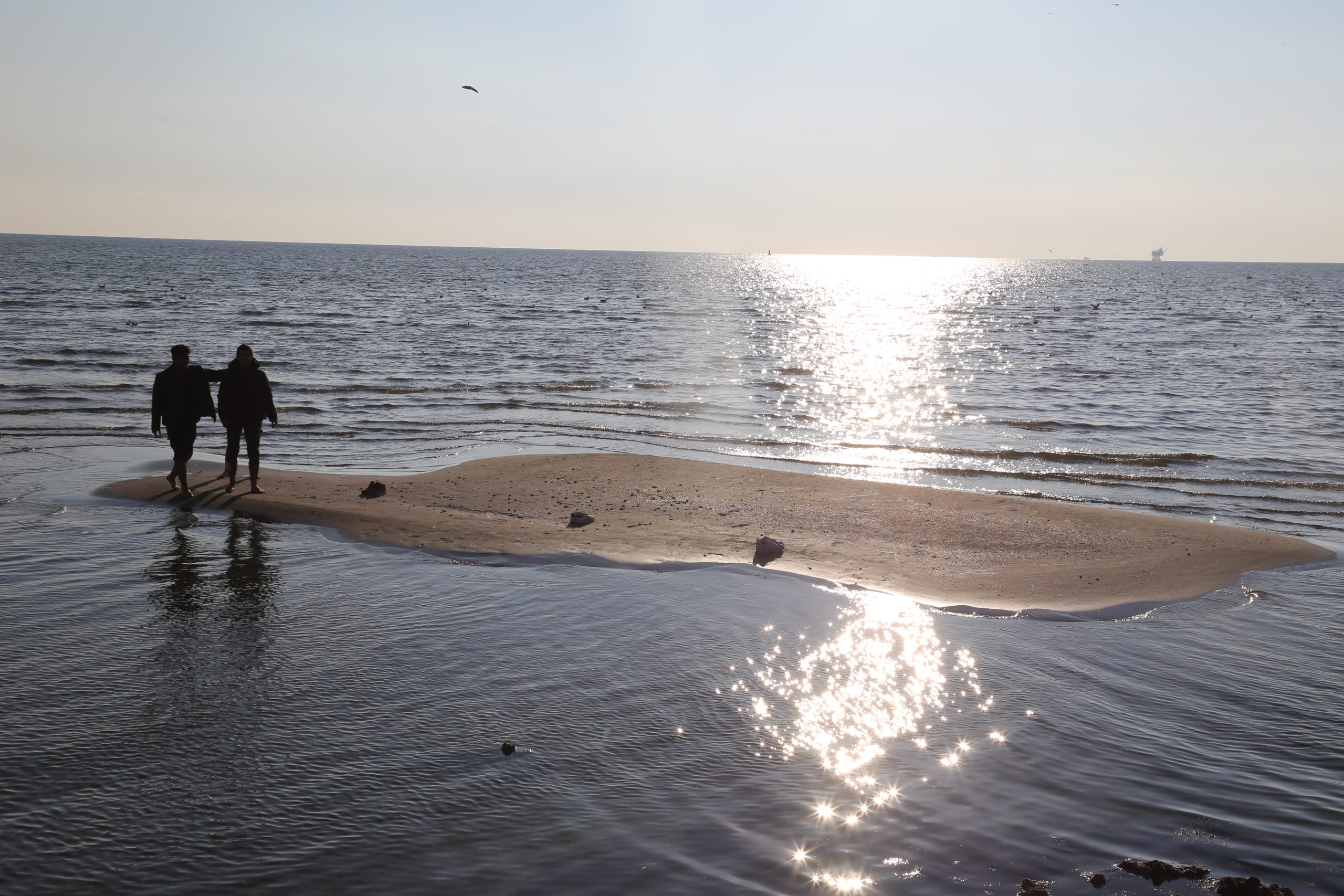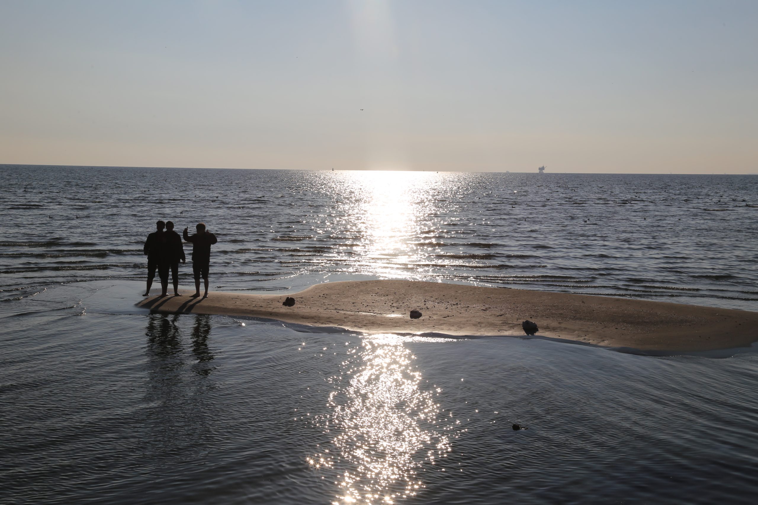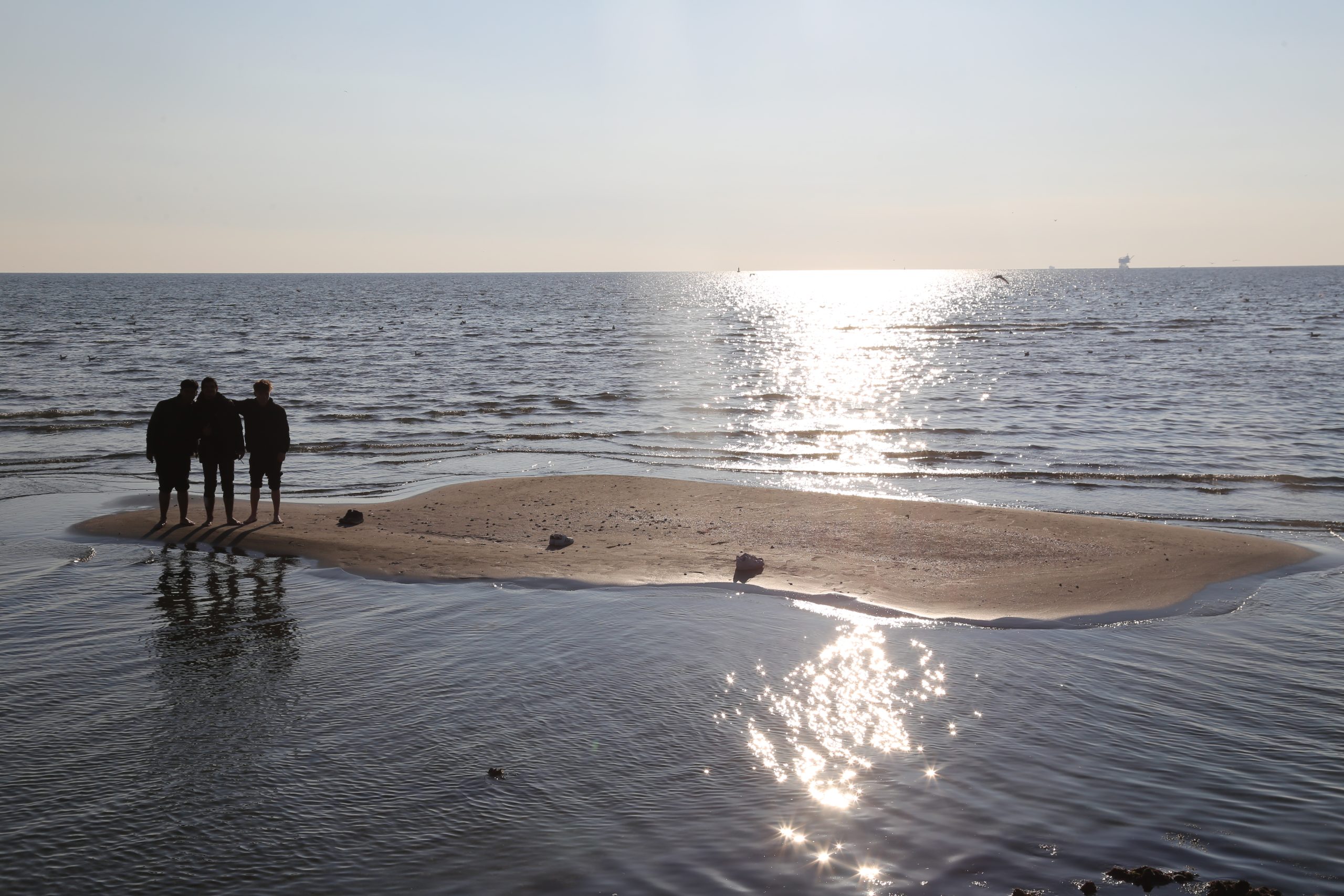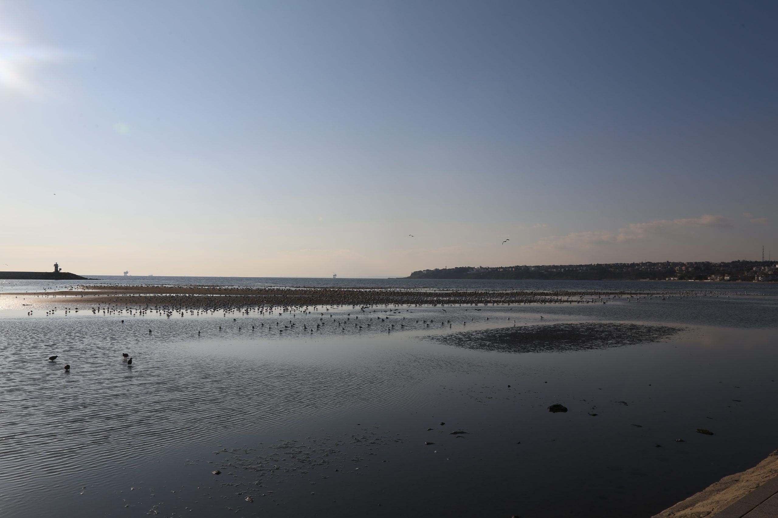 Silivri’de deniz çekildi. Vatandaşlar ortaya çıkan adacıklarda selfie çekiyor!